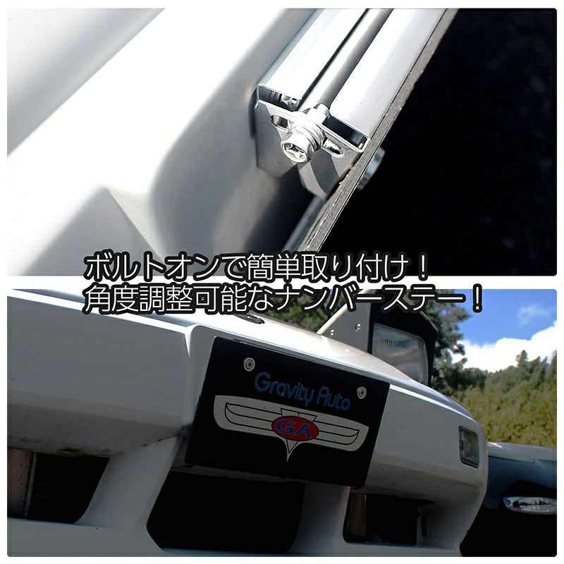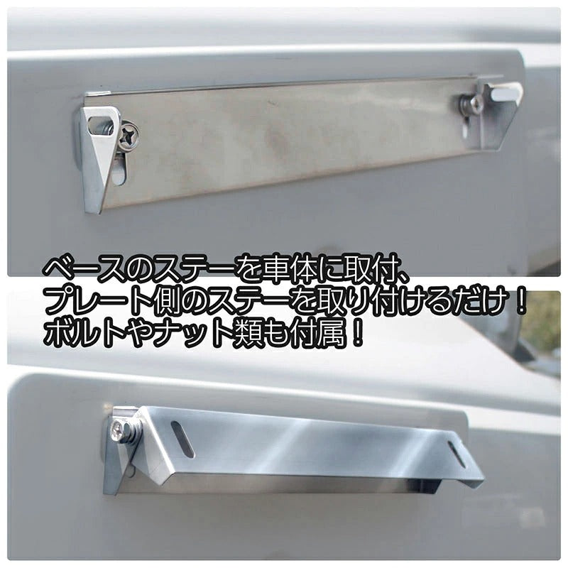 角度調整式 ナンバーステー ステンレス製 鏡面シルバー ボルトオンで簡単取り付け! 調整幅が広いふたつの支点!
