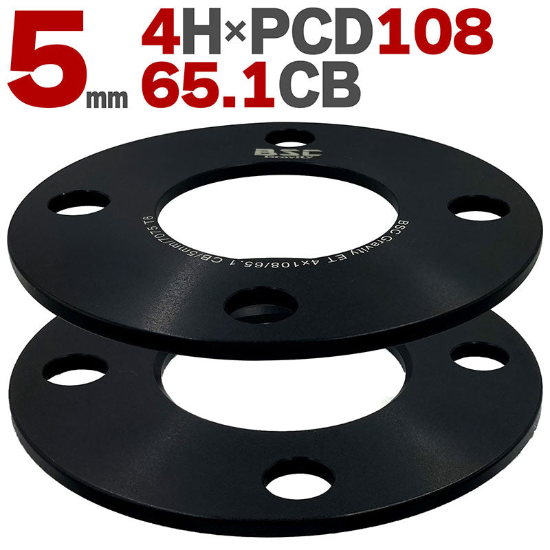 ホイールスペーサー 5mm 2枚組 4H PCD108 ハブ径65.1mm 7075-t6 アルミ鍛造 PEUGEOT CITROEN VOLVO プジョー シトロエン ボルボ 欧州車 EU ヨーロッパ ワイトレ ハミタイ ツライチ カスタムカー